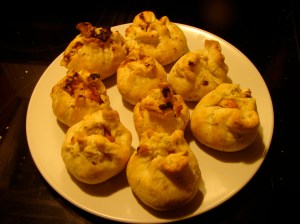 When I was little, I loved the Little House on the Prairie book that was about Almanzo Wilder’s childhood in upstate New York. In one scene, he gets all excited because his mom makes him his favorite dish – apples and onions. As a child, I thought this was a very odd combination, because apples were sweet. Well, it turns out that little Almanzo was a culinary genius, because apples are lovely in a lot of savory environments. In these little pastry parcels, carrots and apples, roasted with shallots and garlic, show off their sweetness to tart goat cheese and sharp cheddar, and all the tastes are enhanced by the lovely combination of golden raisins and rosemary. A surprising mix-up, perhaps, but really delicious. I made these quite small, because the filling is soft and it contrasts nicely with the crispy crust. Have 2 or 3 with soup or a salad for dinner, or take them to a party as a fancy appetizer.