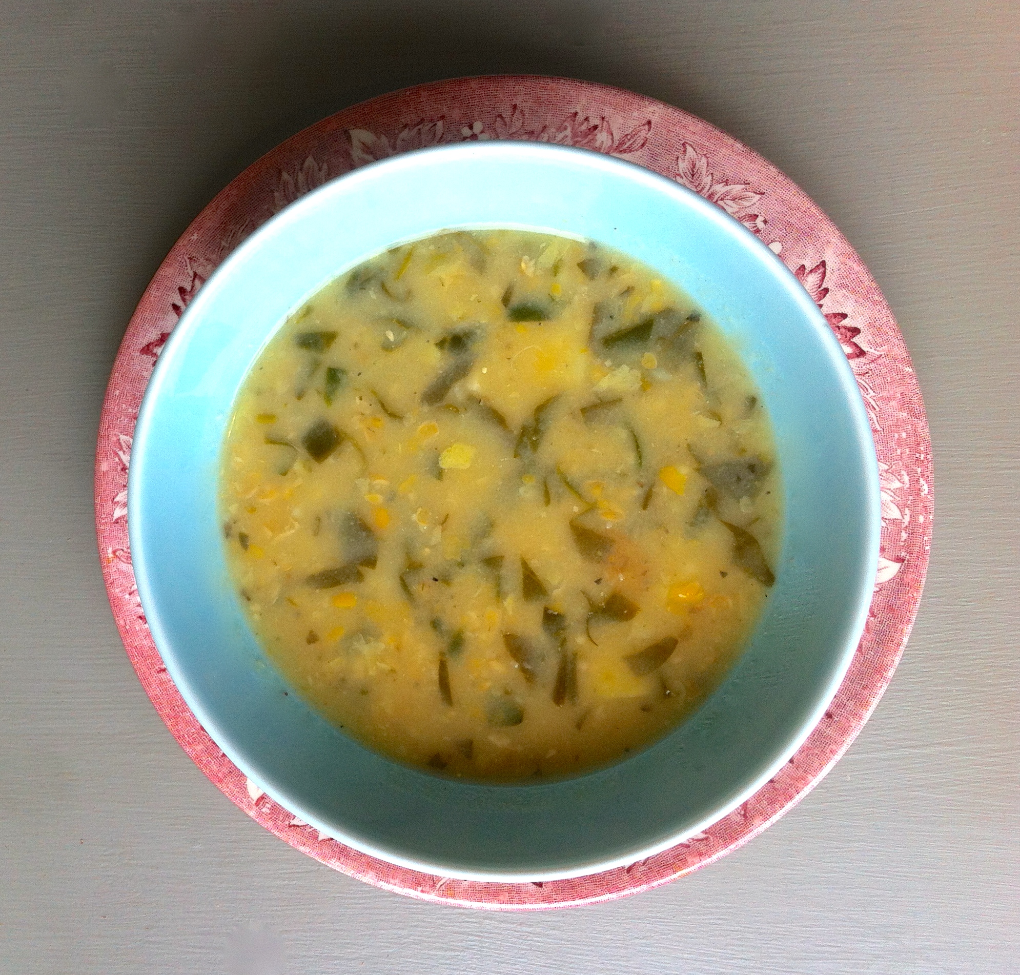 Speaking of color! This dal had red lentils, yellow split peas and red beans. So it was very warm and autumnal. It also had red peppers and sweet potatoes, to add to the warmth and autumnalness. It was tasty, too, and satisfying. If you cook if for a nice long time, the red lentils will break down into a sort of background creaminess, but the split peas and red beans will retain their texture. We ate this with basmati rice and some